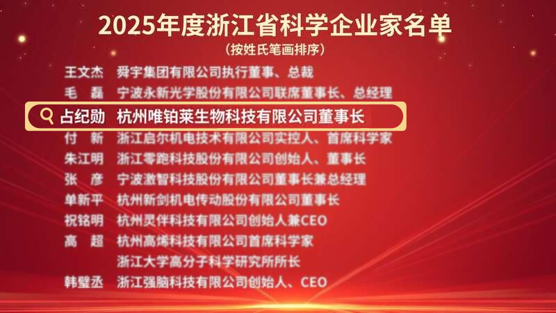此次入选,既是对唯铂莱董事长占教授在科技创新突破、产业转型升级驱动、行业发展引领等方面卓越表现的高度认可,更是对唯铂莱在合成生物与生物制造领域所取得成绩的高度赞誉。